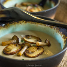 Veloute makes many different derivative sauces and soups, and it is a medium for gentle cooking of lean proteins. Master veloute and create beautiful things in your kitchen without peeking at recipes. Veloute is based on white (light) vegetables, poultry, meat, or fish broths and thickened with blond roux. We’ll make chicken and mushroom Velute Supreme and cook chicken breast in it. You will learn how to make silky low-calorie soups with shrimp and smoked fish based on Allemande, a derivative sauce with yolks and cream.